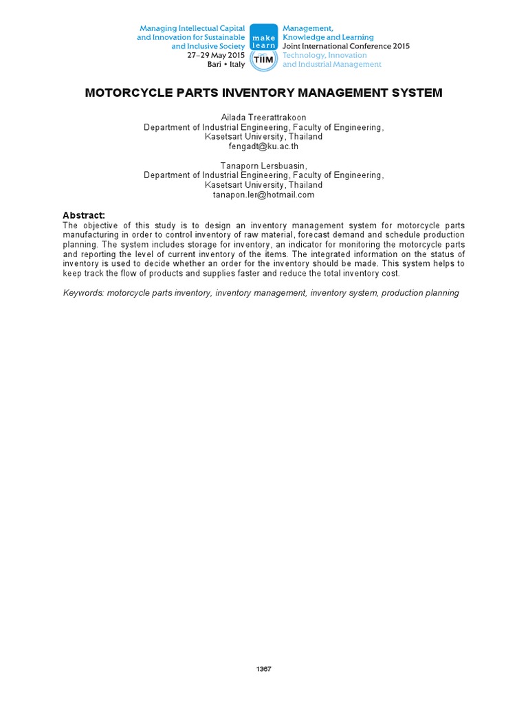 Motorcycle Parts Inventory Management System Abstract PDF