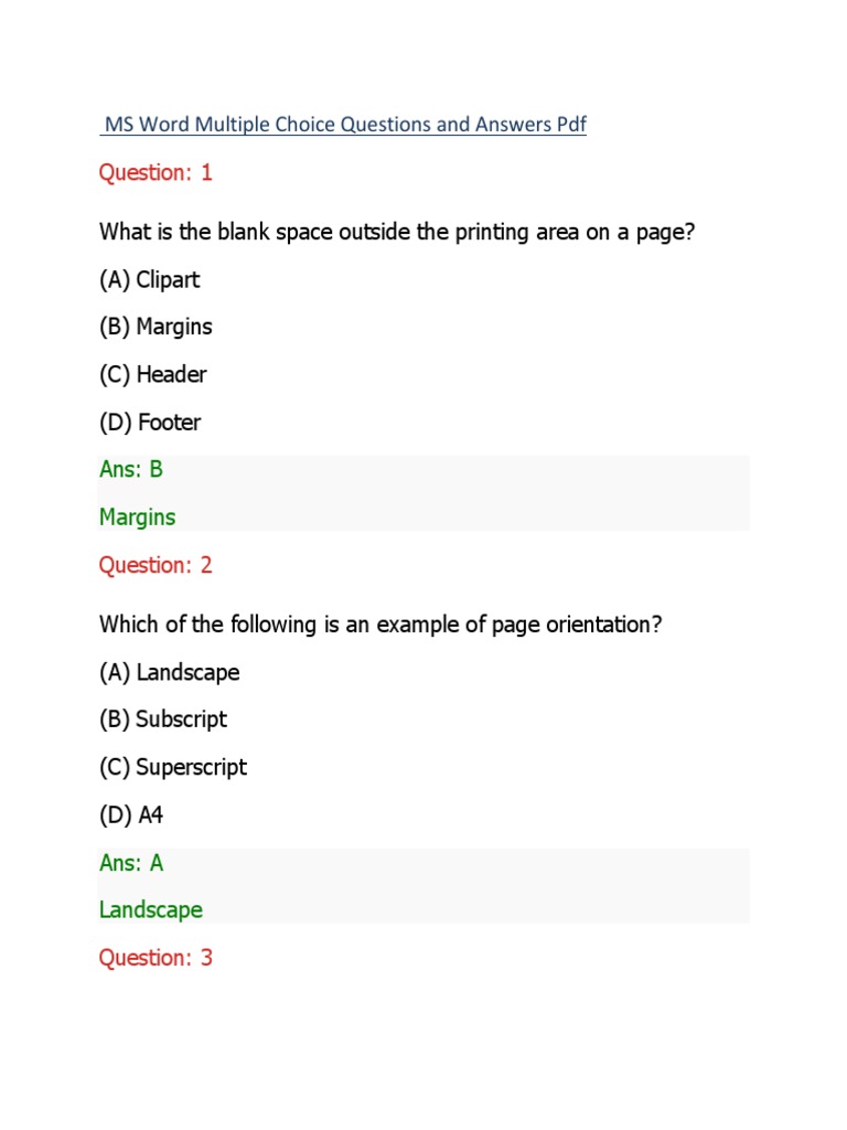 Ms Word Multiple Choice Questions Answers PDF