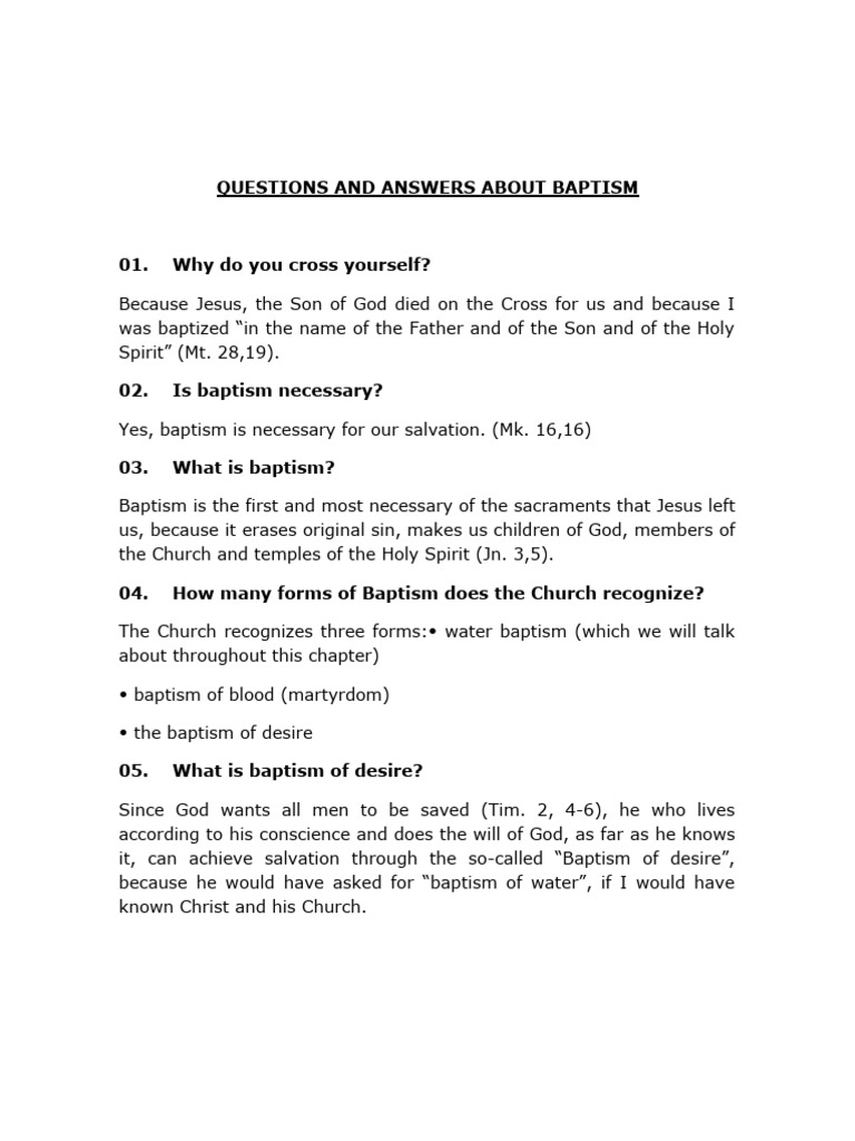 Questions and Answers About Baptism Download Free PDF Baptism