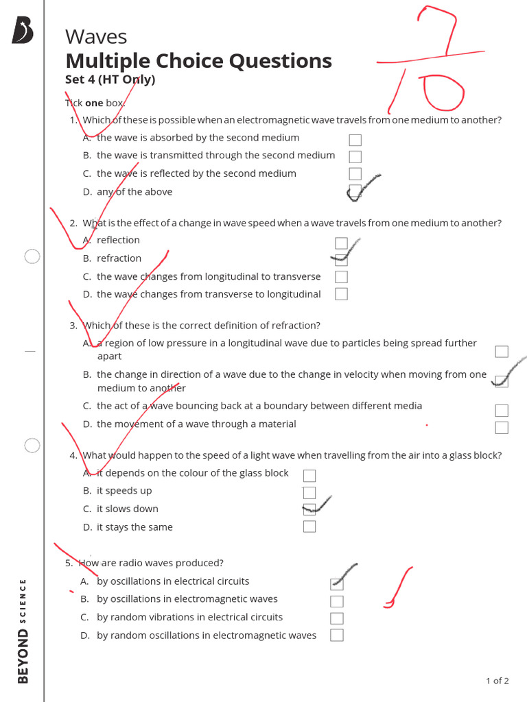 Waves Multiple Choice Questions Set 4 HT Only PDF