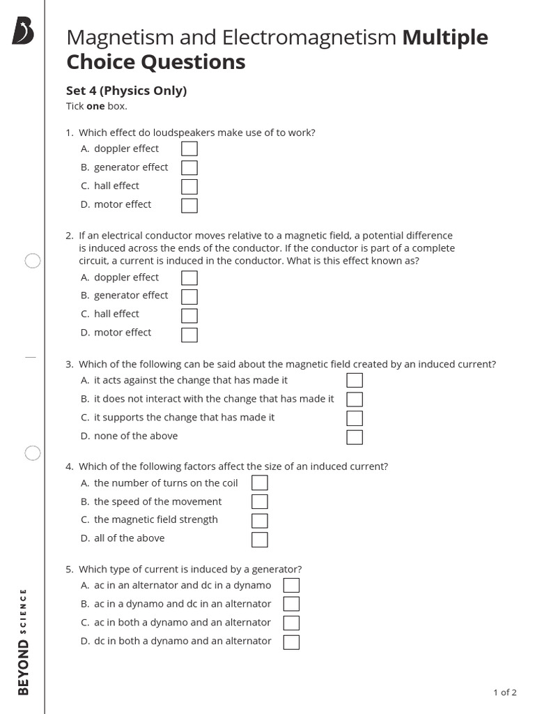 and Multiple Choice Questions Set 4 (Physics