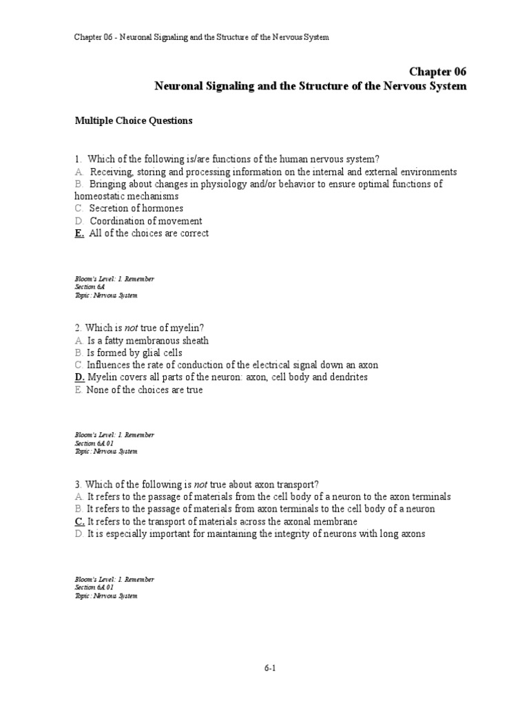 Neuronal Signaling and The Structure of The Nervous System Multiple