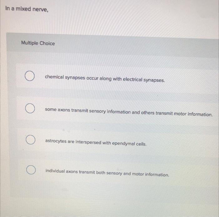 Solved In a mixed nerve, Multiple Choice chemical synapses