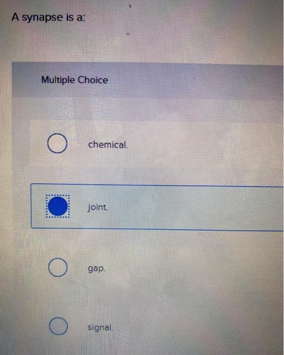 Solved A synapse is a Multiple Choice chemical joint. O