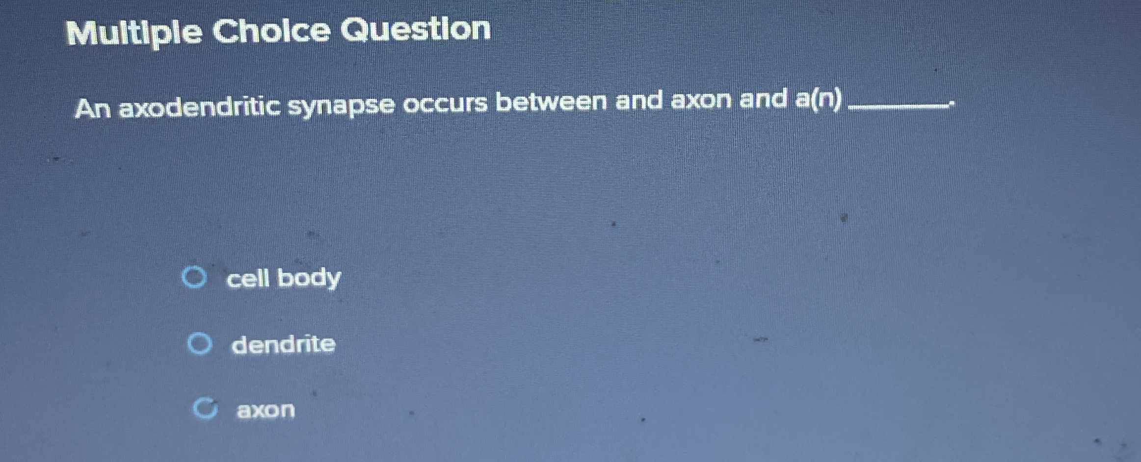 Solved Multiple Cholce QuestionAn axodendritic synapse