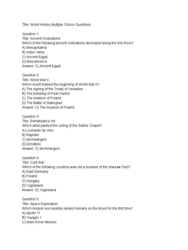 World History Multiple Choice Questions PDF