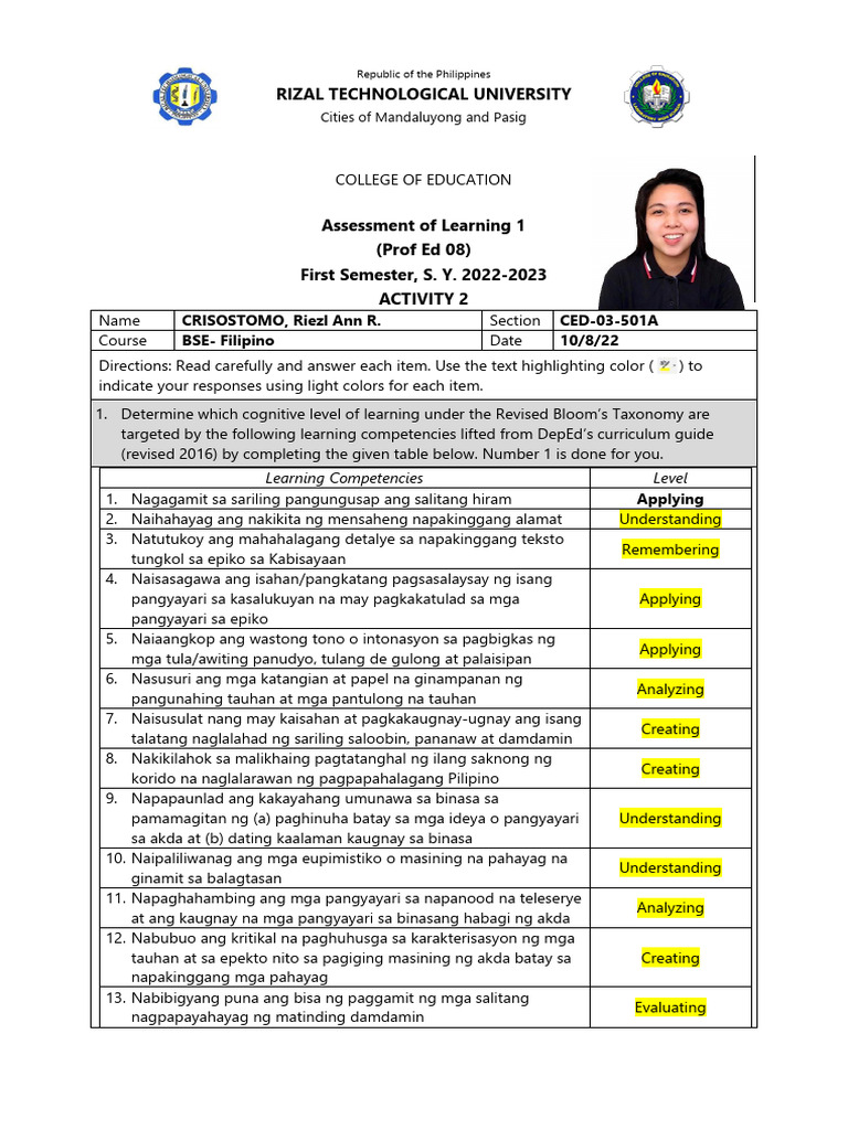 Activity 2 For Filipino Majors PDF Educational Assessment