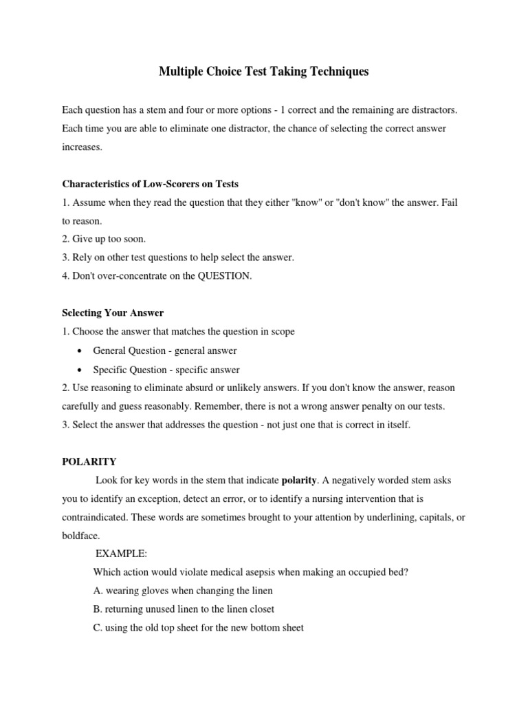 Multiple Choice Test Taking Techniques PDF