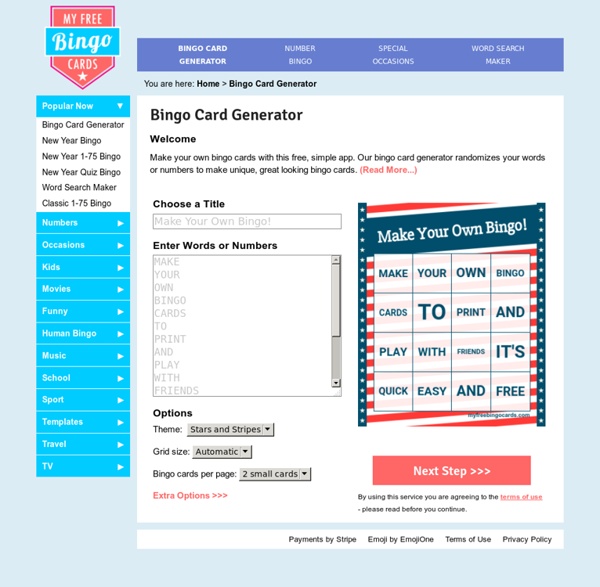 Create unlimited bingo cards with text, images & emojis using our bingo card maker. Create, customize, and print your own bingo cards for free. Choose from templates or make your own with custom text, colors, and layouts. Create randomized printable and virtual bingo cards for free in seconds with our bingo card generator. Print at home, get them delivered, or.