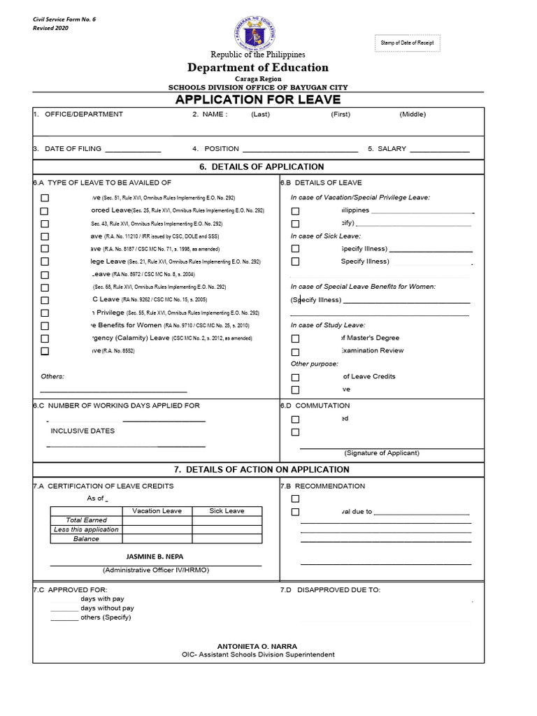 NEW CS Form No. 6 Revised 2020 Application For Leave Fillable 1 PDF