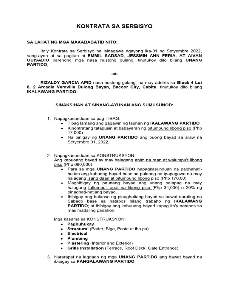 Contract of Service Tagalog PDF