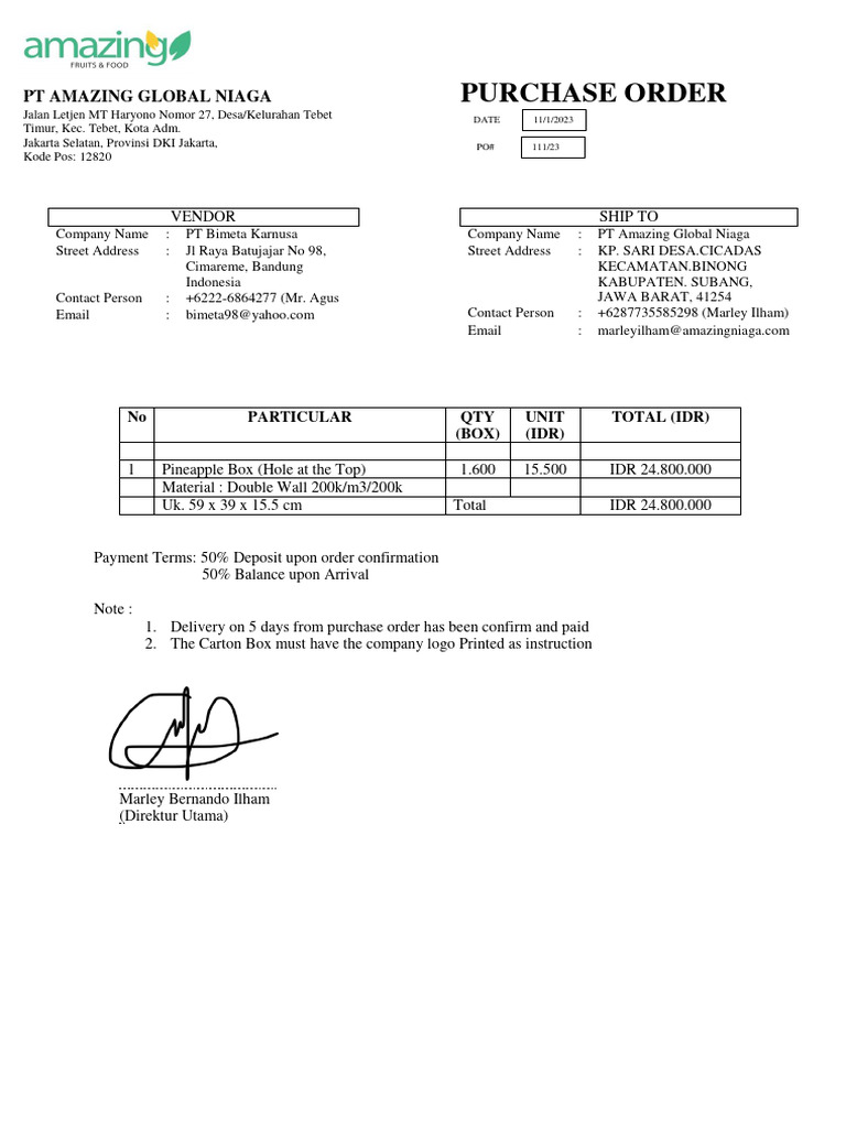 Purchase order Sample PDF
