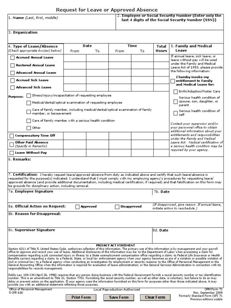 OPM Form 71 Leave Request Form1 PDF Sick Leave Social Security