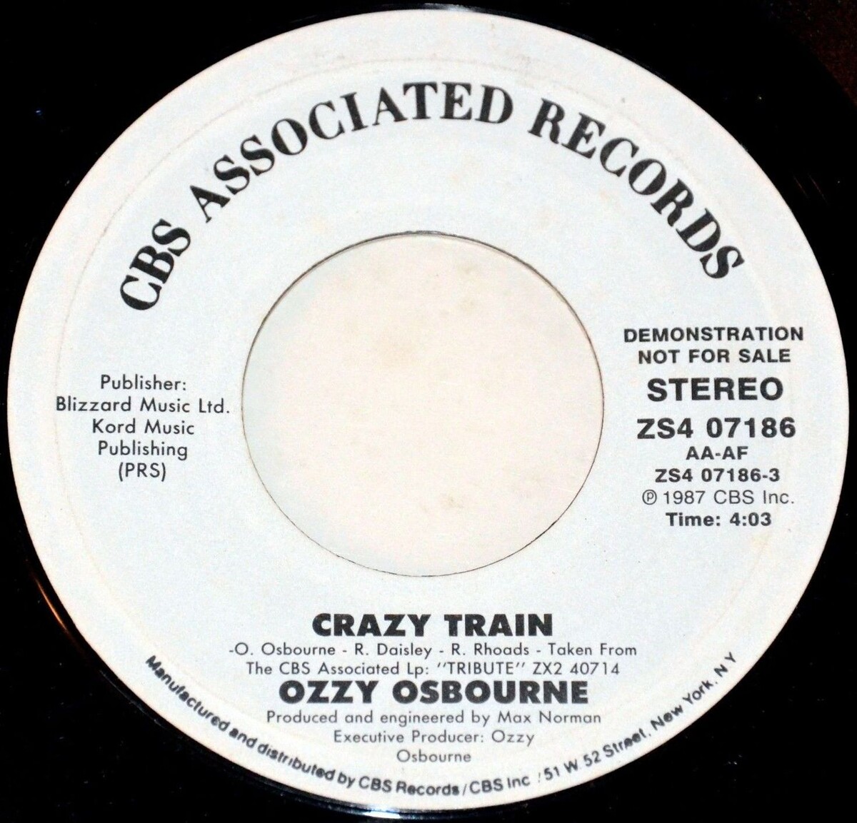 Crazy Train by Ozzy Osbourne (Single; CBS Associated; ZS4 07186