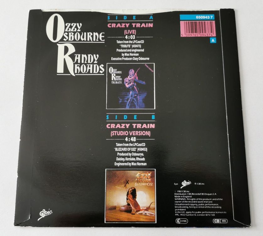 OZZY OSBOURNE RANDY RHOADS Crazy train 7"UK 1987 NM/NM Kaufen auf Ricardo