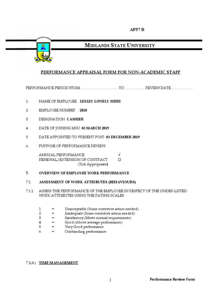 Ap 57B Appraisal Form Non Teaching Staff (B) PDF Performance