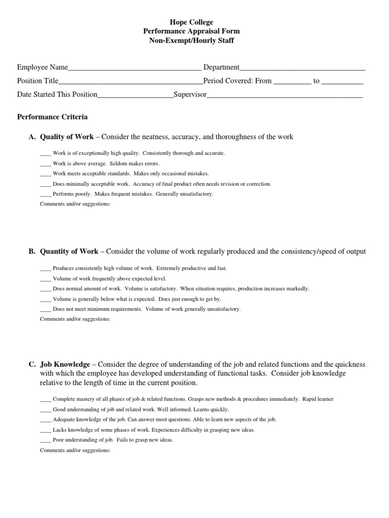 Hourly Performance Appraisal Form PDF Performance Appraisal