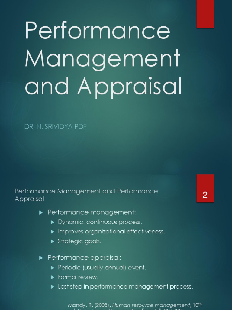 Performance Management and Appraisal Dr. N. Srividya PDF PDF