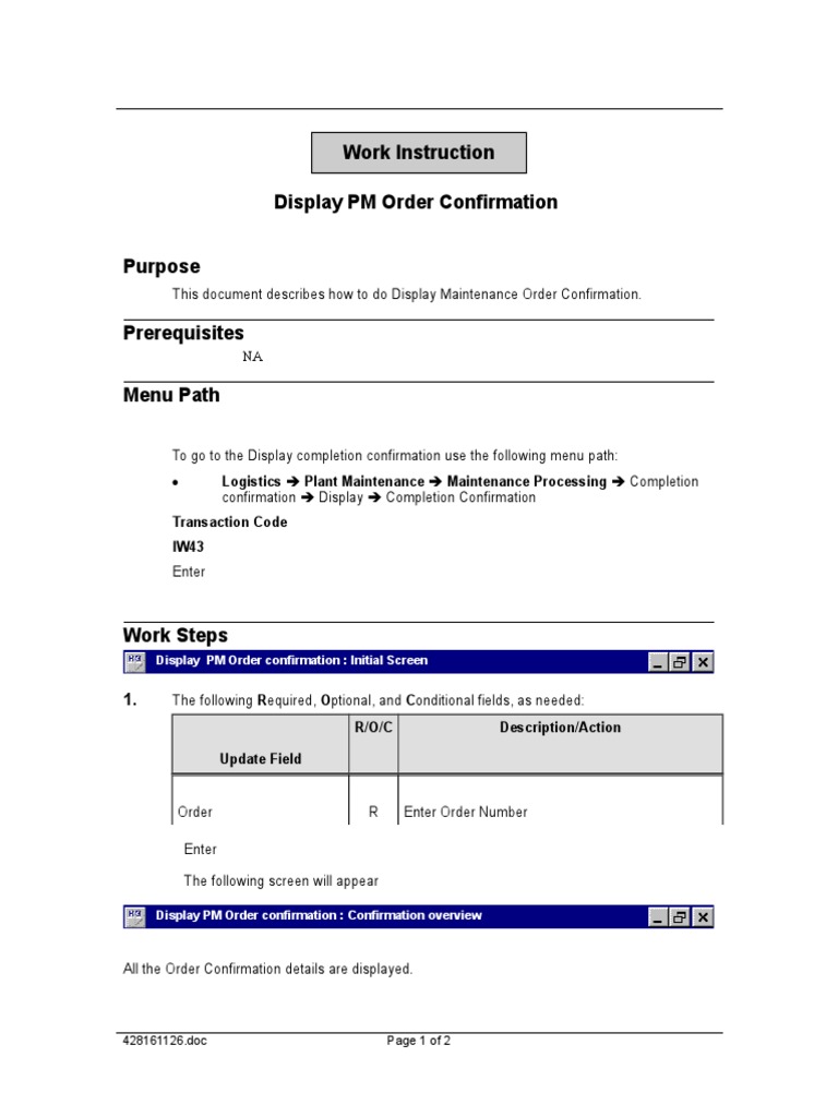IW43SAP Display PM Order Confirmation PDF Computer Engineering