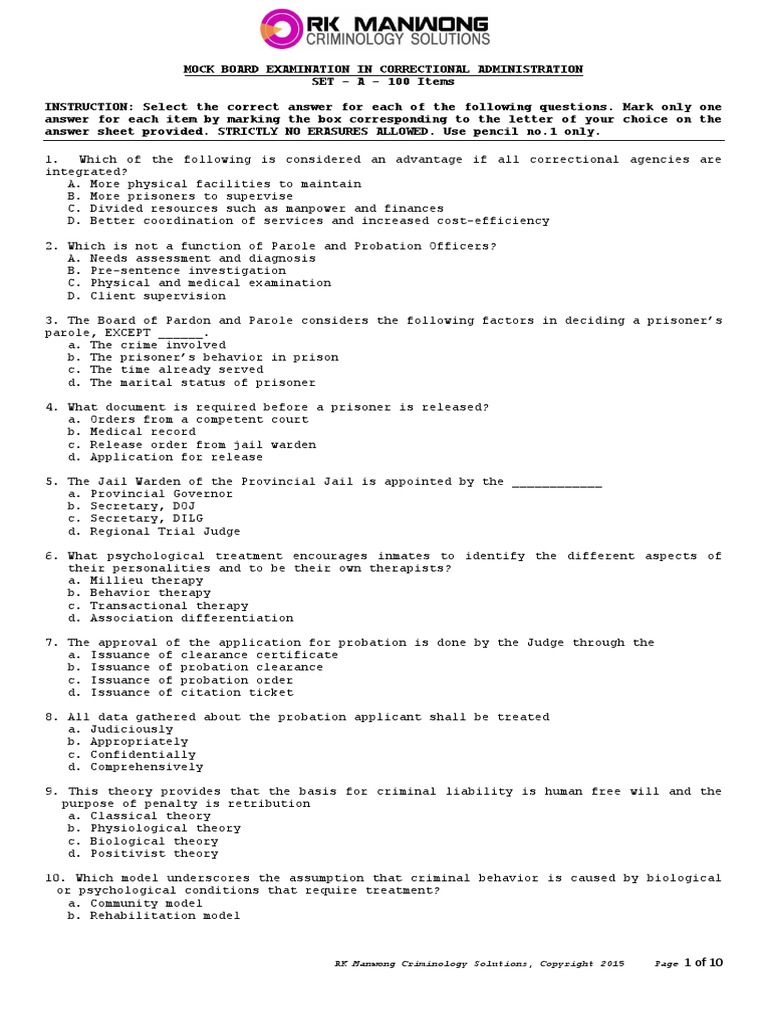 Correctional Administration Mock Exam PDF Probation Parole