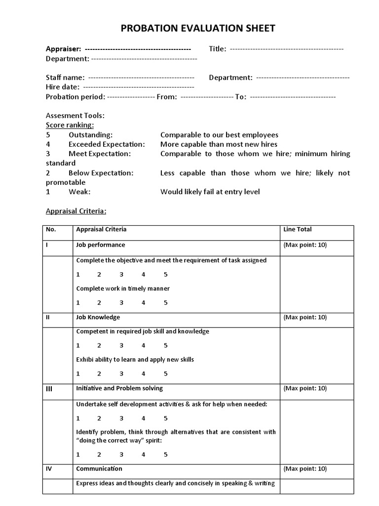 Probation Evaluation Sheet PDF Performance Appraisal Educational