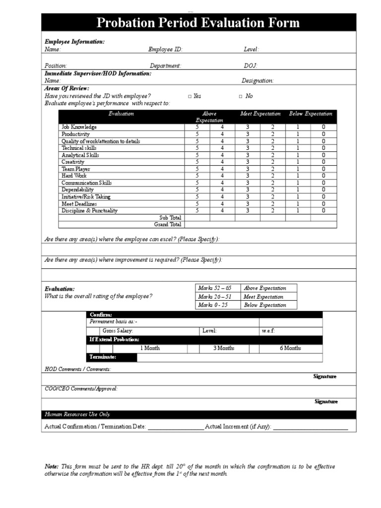Probation Period Evaluation Form PDF Human Resources Labor