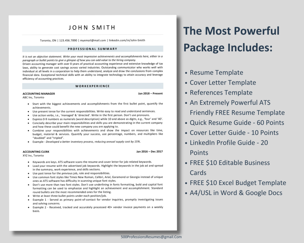 Canadian Style Resume US Style Resume ATS Friendly Resume Template