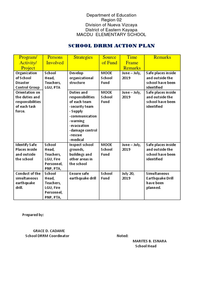 School DRRM Action Plan Program/ Activity/ Project Persons Involved