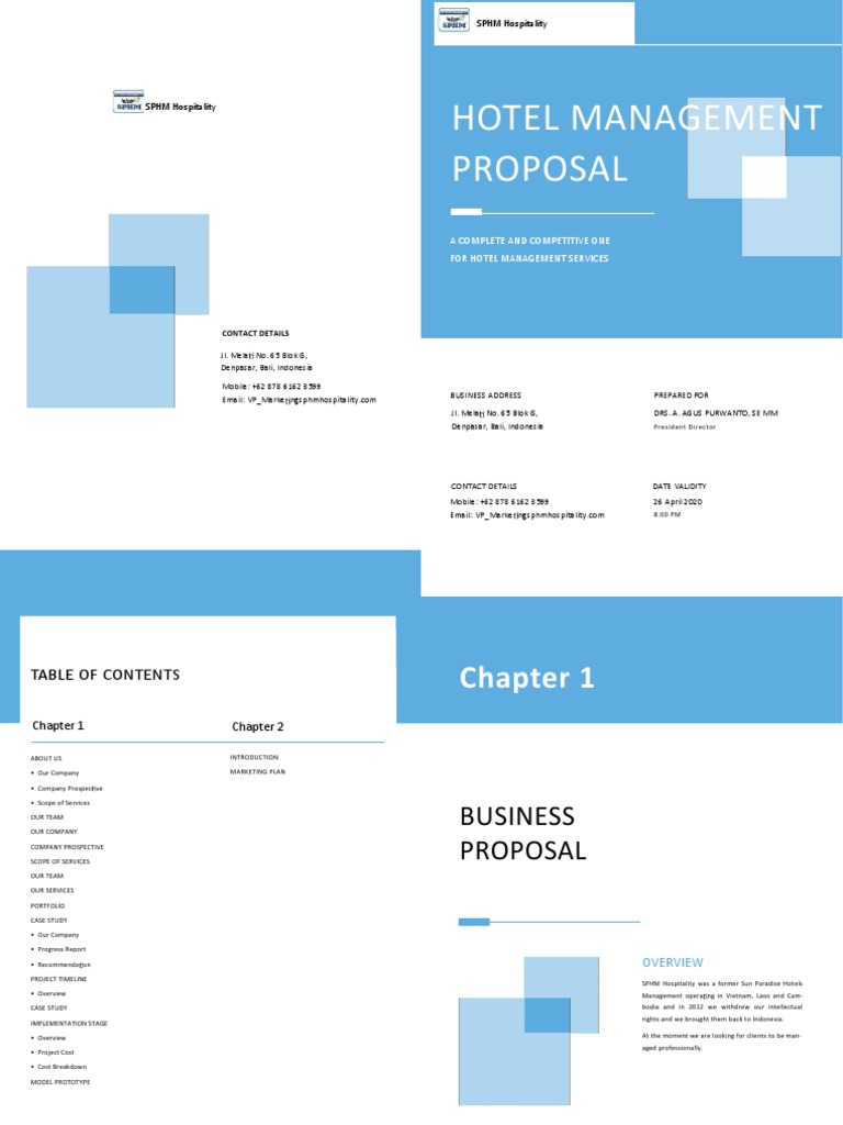 A hotel management proposal is an official script that underlines the key aspects of management strategies to be adopted by a. Get started by making use of our hotel management contract proposal. Take full advantage of our template’s contents to save. Edit a free hotel management proposal template with ease. Ideal for hoteliers and event planners.