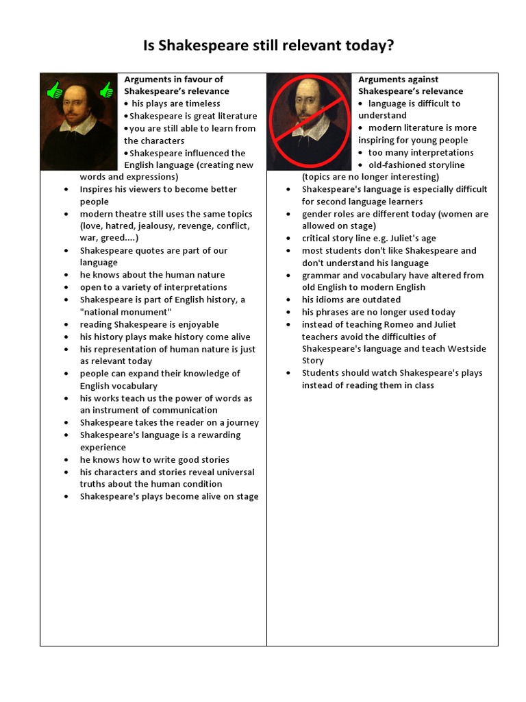 2 Pros and Cons of Teaching Shakespeare PDF English Language