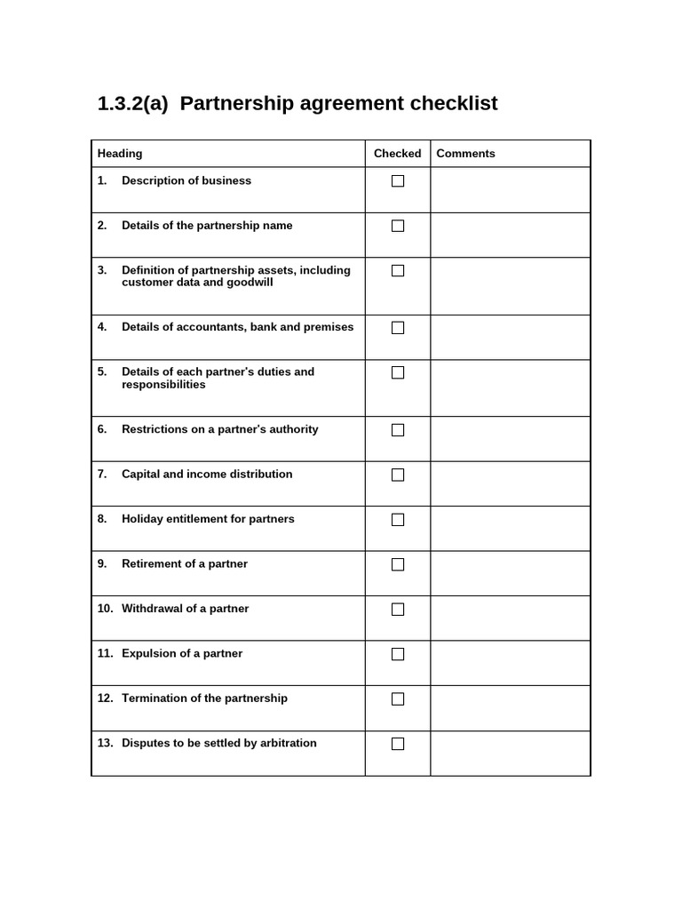 1.3.2 (A) Partnership Agreement Checklist PDF Finance & Money