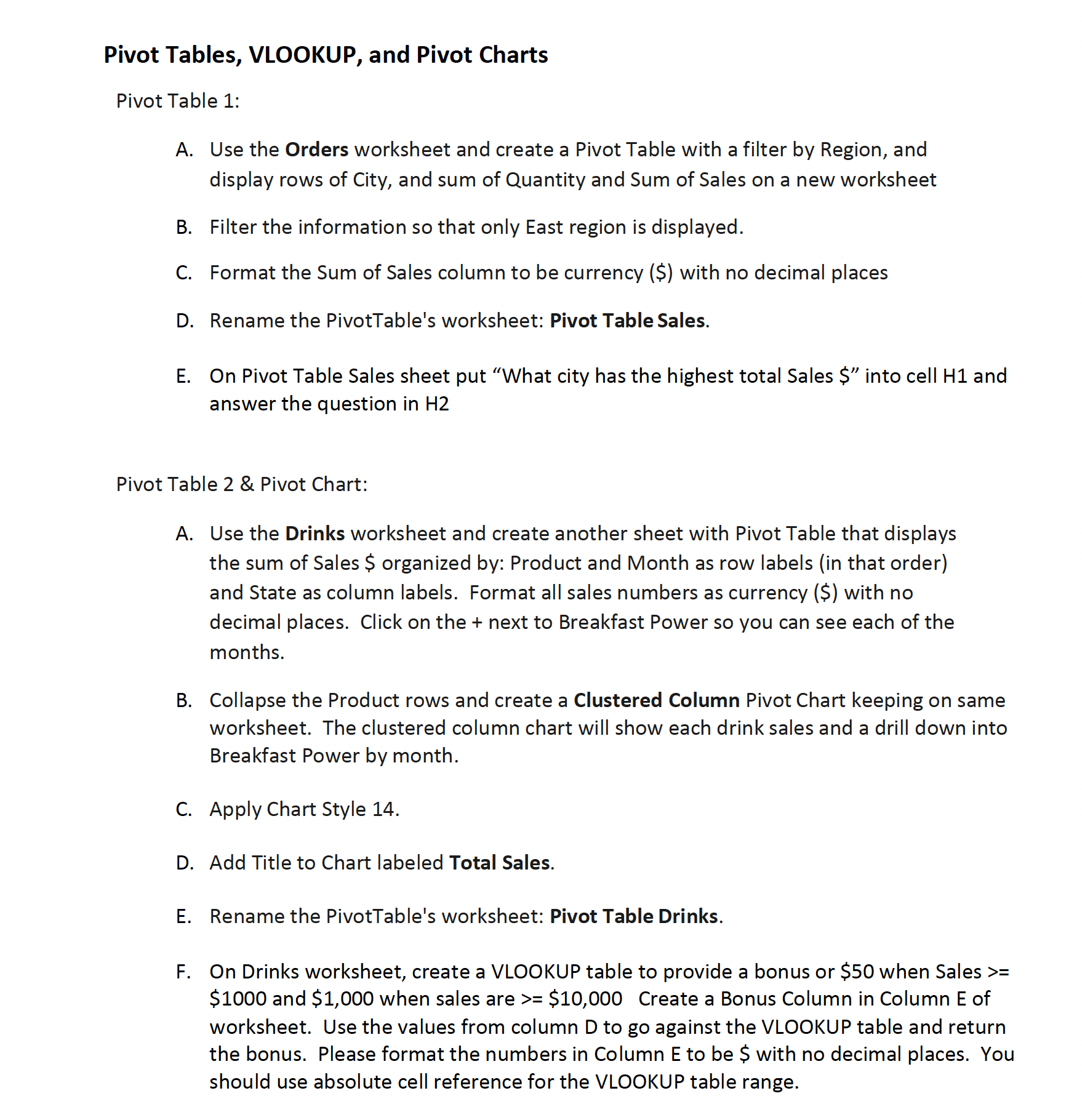 Solved Pivot Tables, VLOOKUP, and Pivot Charts Pivot Table