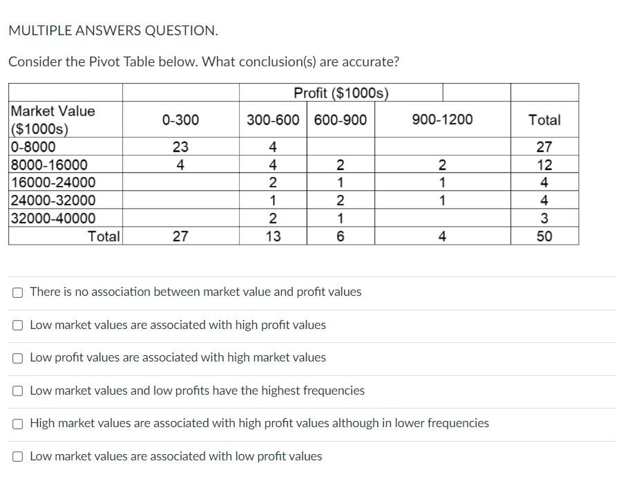 Solved MULTIPLE ANSWERS QUESTION. Consider the Pivot Table