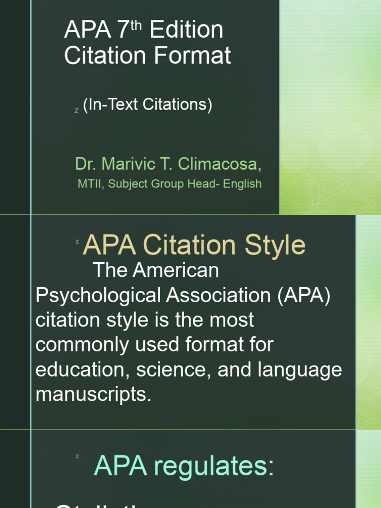 In Text Citations APA 7th Edition PDF Citation Apa Style