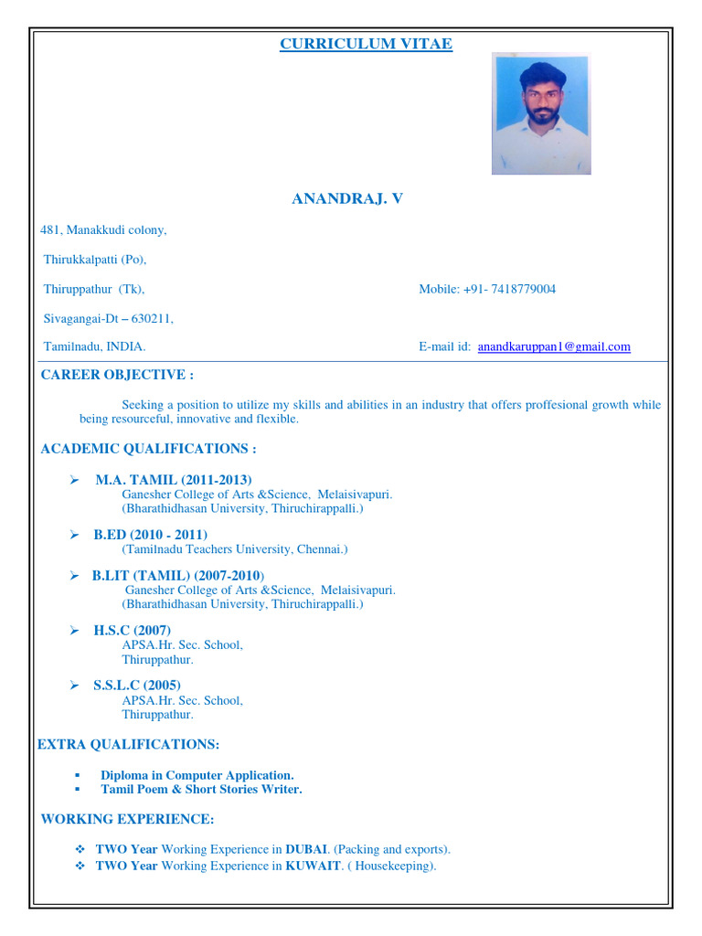 In this tutorial you will learn about the 6 free resume builder in tamil. Resume format for job in tamil: These online resume makers provide cover letter examples,. Fill following details and get your resume in 2 minutes. Recent job vacancies are updated through nithra jobs.