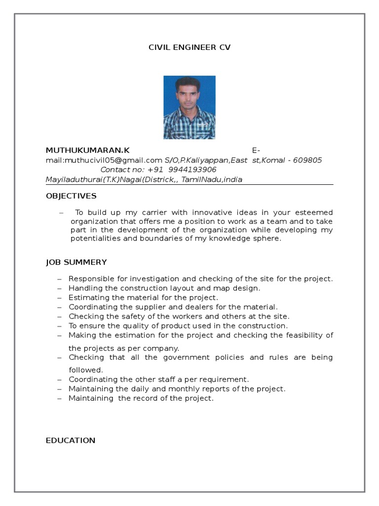 Muthukumaran Resume Download Free PDF Tamil Nadu Engineering
