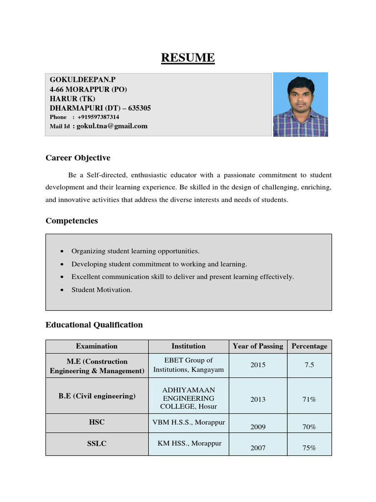 Resume 2 PDF Tamil Nadu