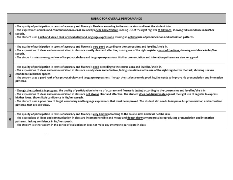 Rubrics for overall performance PDF Fluency Speech