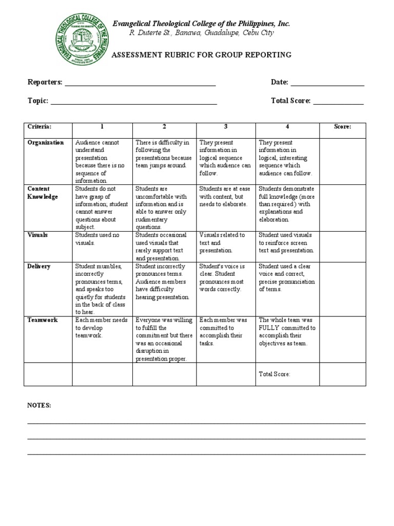 Group Reporting Rubrics PDF Cognitive Science Psychology