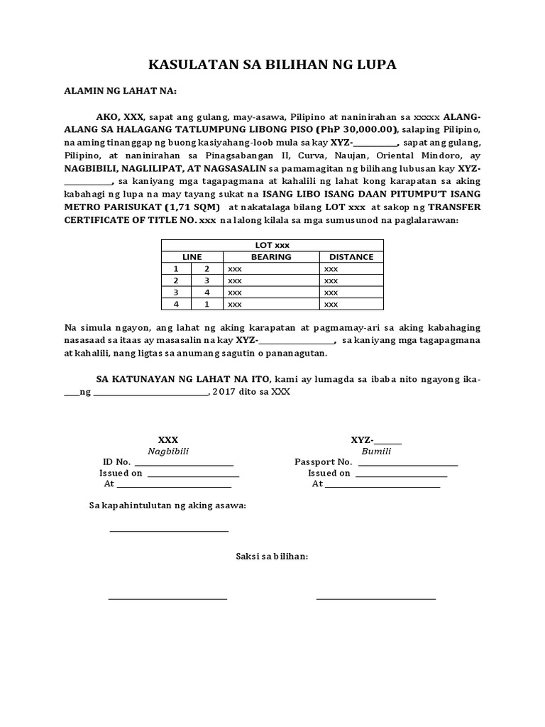Deed of Sale Tagalog PDF
