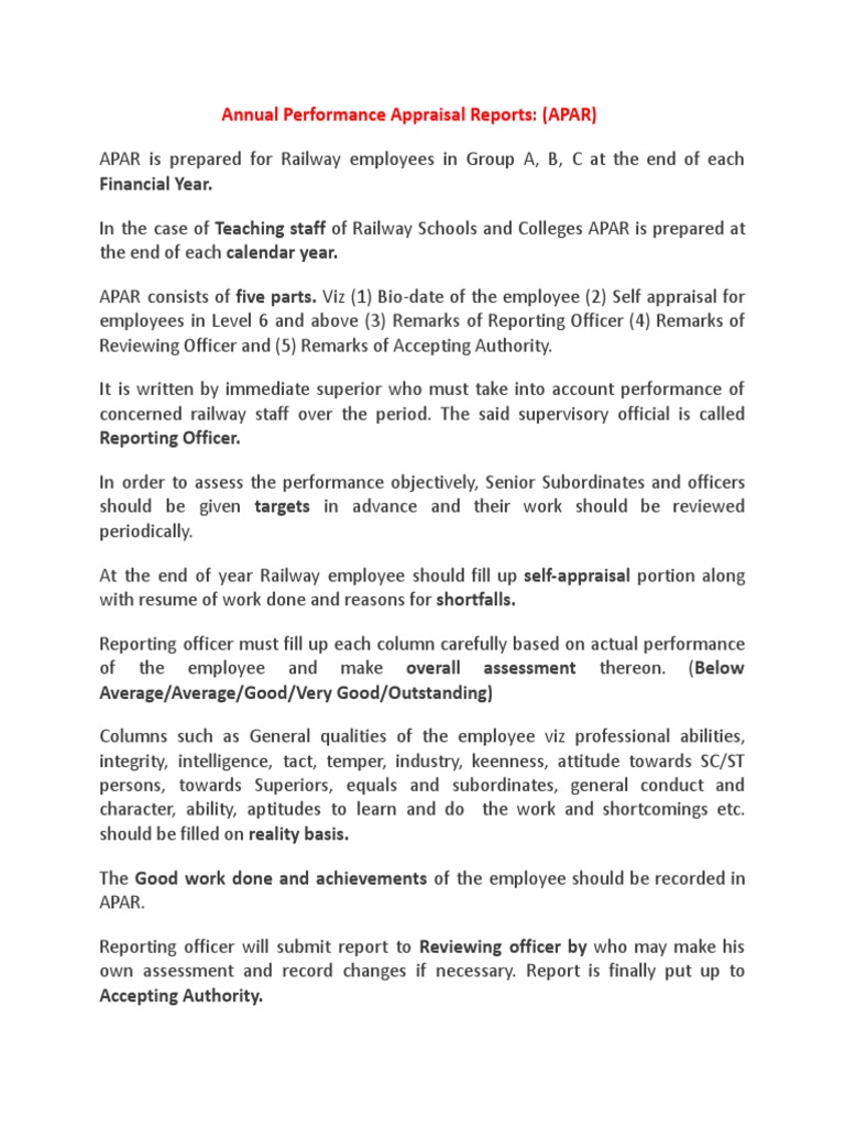 APAR Annual Performance Appraisal Report PDF Performance