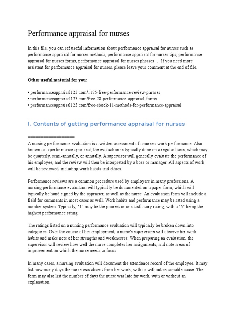 Performance Appraisal For Nurses PDF Performance Appraisal Nursing