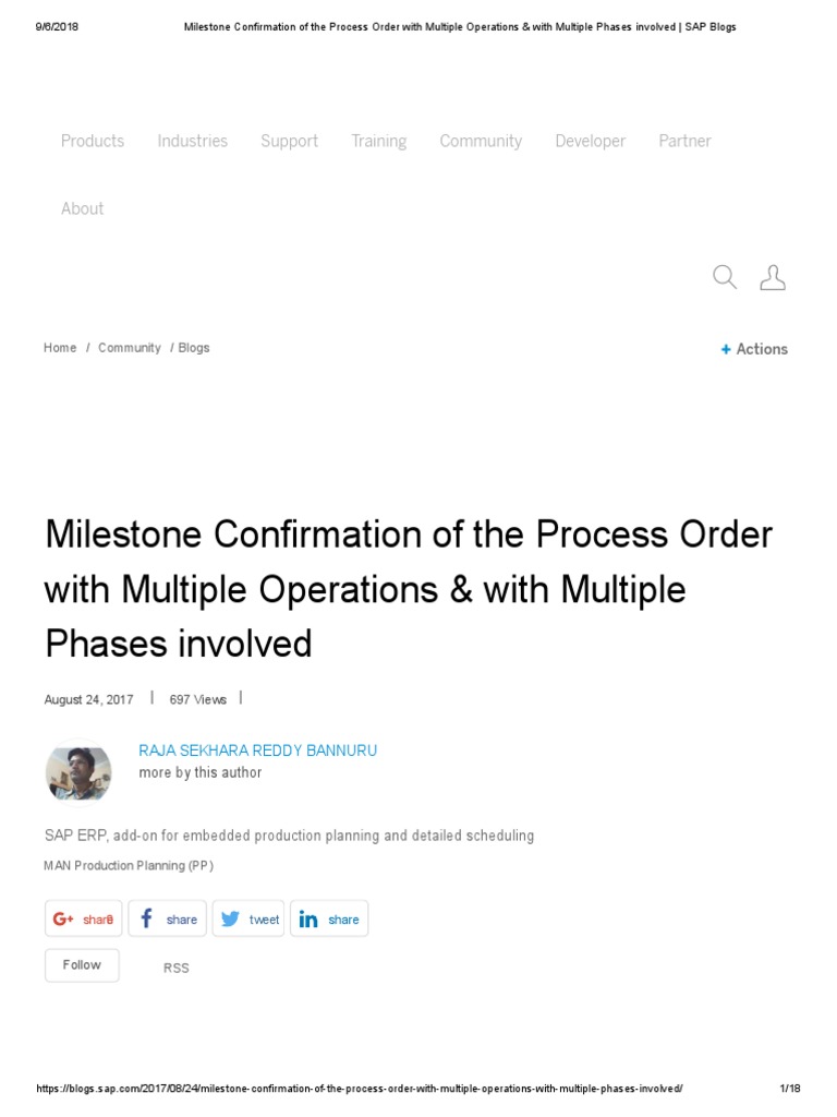 Milestone Confirmation of the Process Order with M... SAP Community