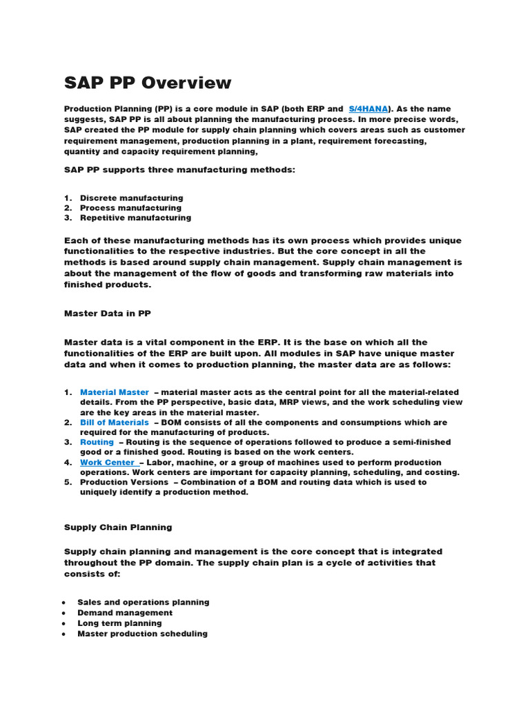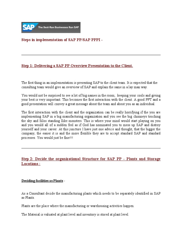 Sap Pp Implementation Project Pdf - Sap activate methodology is a simple, modular and agile framework developed by sap company that allows customers for the implementation. Production planning is the process of aligning demand with. The first thing in an implementation is presenting sap to the client team. This tutorial explains the key concepts of sap production planning (sap pp). Important components of sap pp such as bom, work. Delivering a sap pp overview presentation to the client. Introduction to sap pp (production planning) what is production planning?