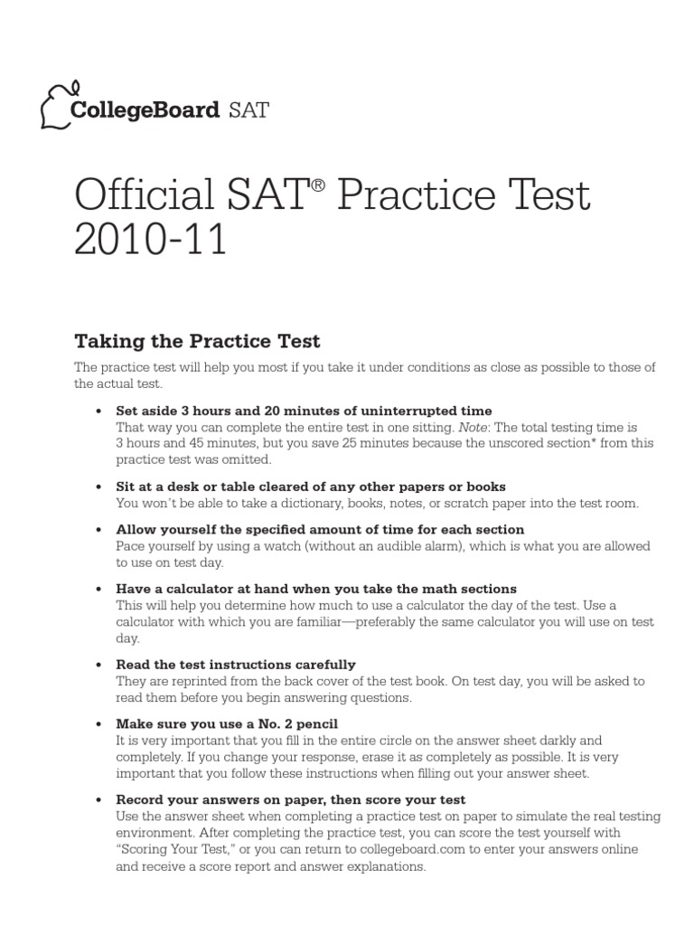 SAT Practice Test PDF Multiple Choice