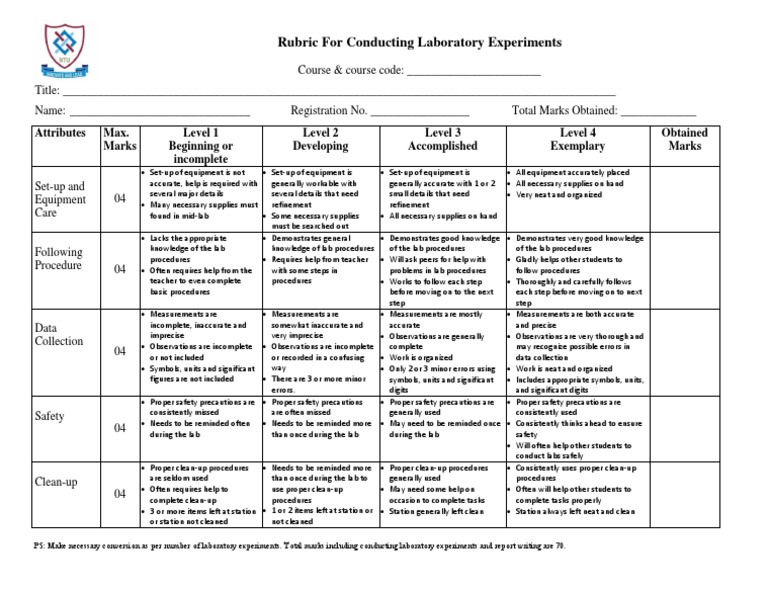Rubric For Conducting Laboratory Experiments PDF Laboratories