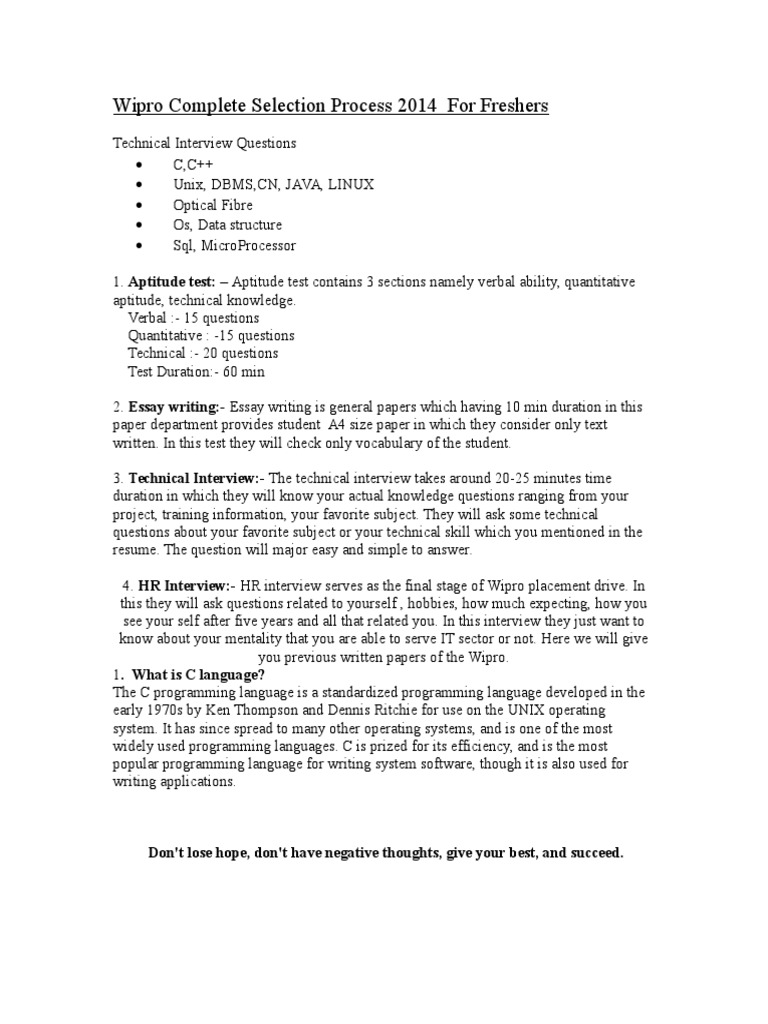 Wipro Interview PDF Evaluation Methods Psychometrics