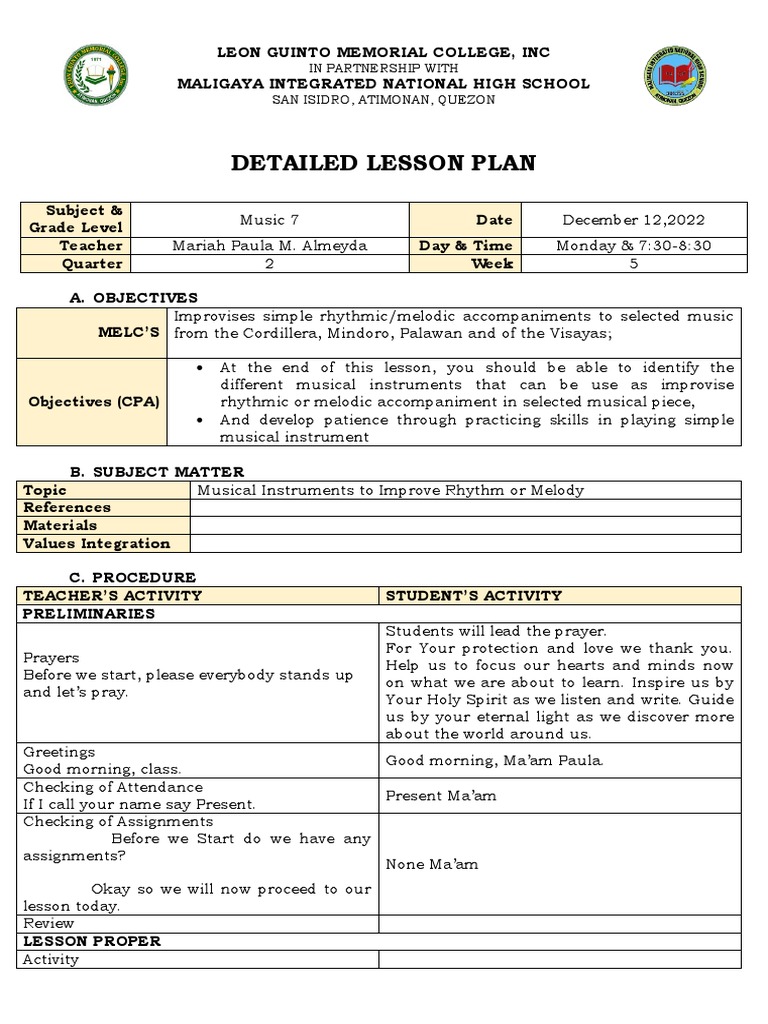 4A Semidetailed Lesson Plan 4A Lesson Plan Semi Detailed I