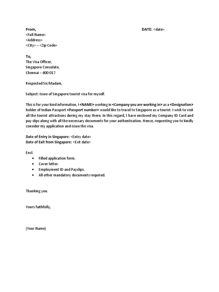 Discover how to write a covering letter for your singapore visa in 2024 with format tips and samples to enhance your application. Learn how to write right and secure your. Are you looking for a comprehensive guide to the cover letter for singapore visa? Craft a compelling singapore visa cover letter with our 2025 samples and format guide. Get tips, a sample format &. Application for singapore tour dear sir/madam, writing to. The visa officer, consulate general of the republic of singapore chennai ct: