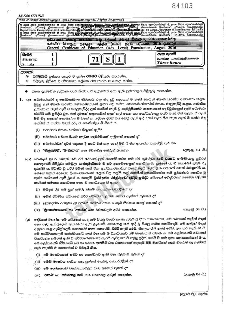 Gce Al Past Paper Collection Sinhala Medium Agaram
